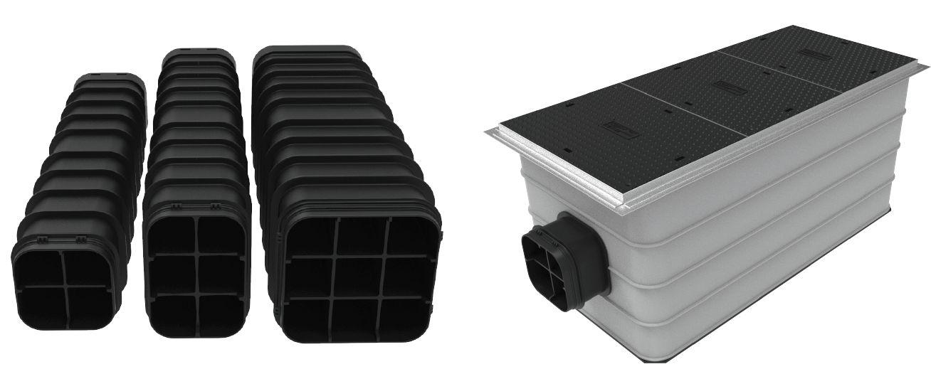 - Modular and in different types of shapes (straight, bends, 4-way, 6-way, 9-way multiduct).