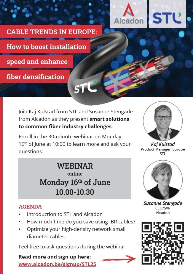 Susanne Stengade from Alcadon has invited Kaj Kulstad from STL for a conversation about smart solutions to some of the challenges we often see in the field: installation speed and fiber density optimization.
